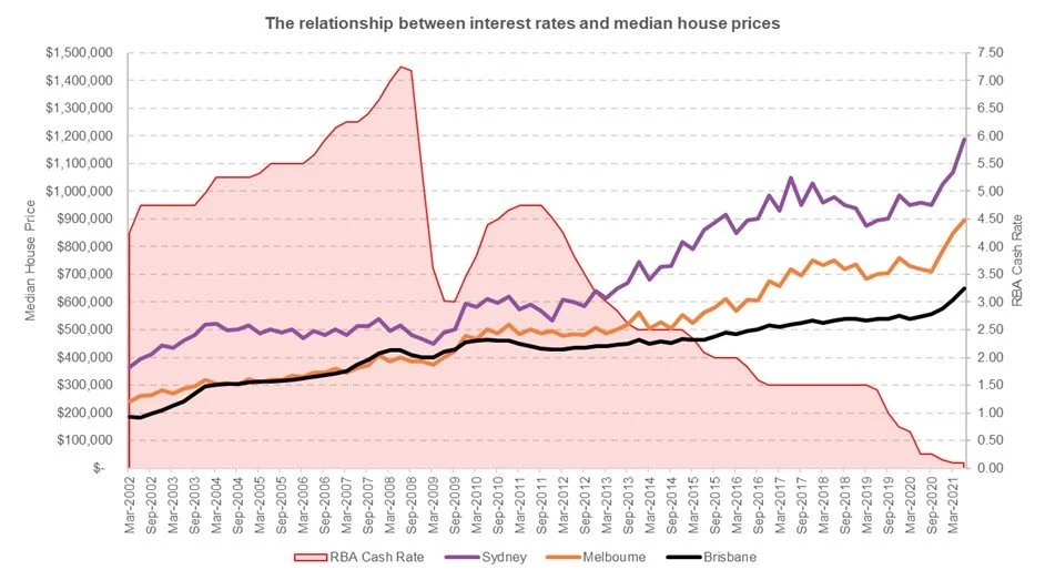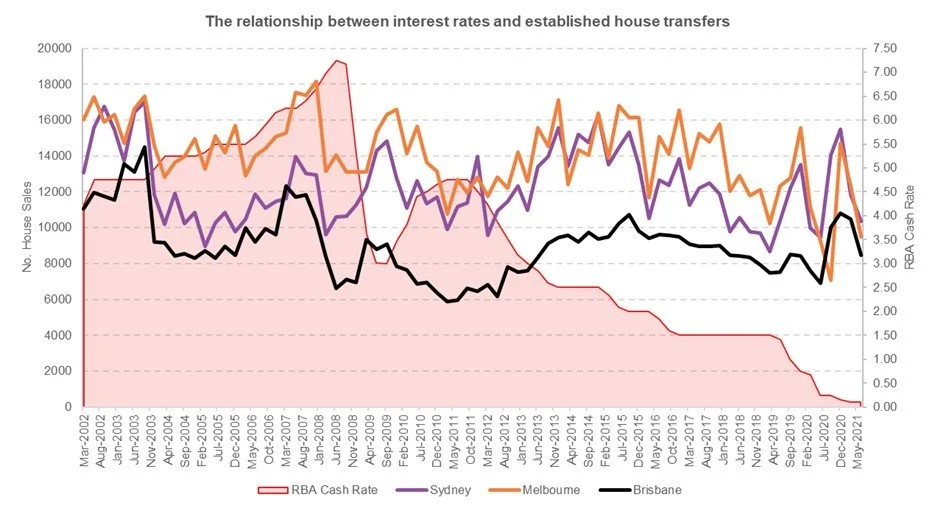 If you were to look at the relationship between prices and the RBA cash rate, the reality is the correlation is very weak, meaning there is significantly more at play than just interest rates. The strongest correlation between prices and interest rates among the east coast capitals is Sydney, which diminishes significantly down to Brisbane. If interest rates were the great predictor of value appreciation and depreciation, then predicting cycles would be simple. Clearly this is not the case otherwise developers would never go broke; banks would never foreclose and Government would get their supply and demand equations considerably more balanced.