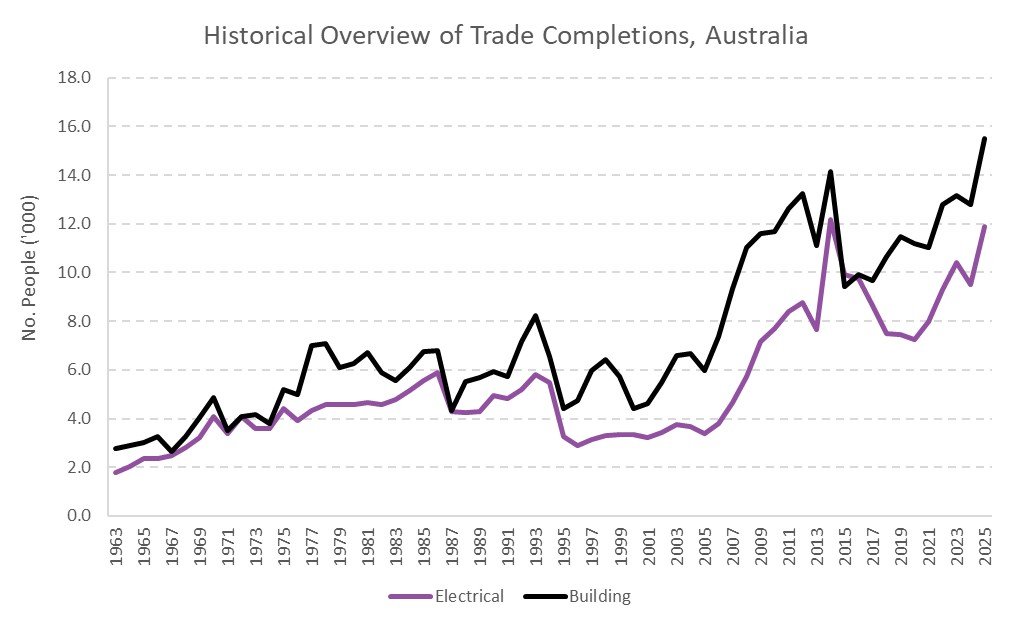 However it doesn’t need to be all about technology either. This is an age group that is highly regarded in the trade sectors coming through apprenticeships to help provide the much needed labour and technical skills in such short supply. Thankfully the current trend is that the growth in building related trade apprenticeship completions is increasing.