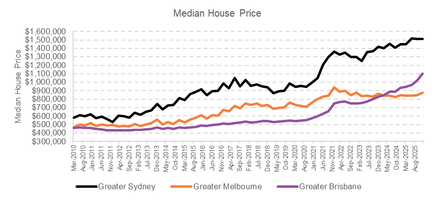 A key driver of this change has been migration. During the post-pandemic period, Victoria recorded significant net interstate migration losses, with a large share of departing residents relocating to Queensland. This population movement, combined with rising interest rates and elevated housing supply, contributed to a prolonged softening in Melbourne’s housing values whilst contributing to Brisbane’s.